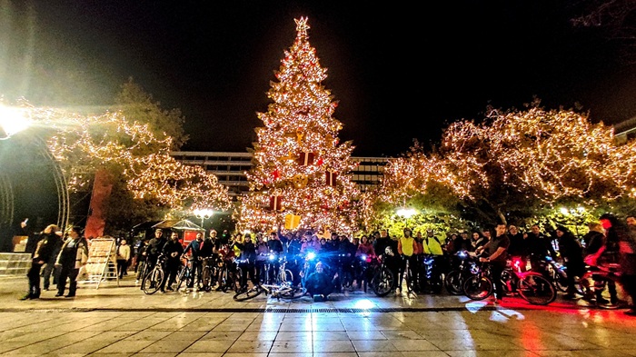 Λεπτομέρειες: «Χριστούγεννα!!! Όπως κάθε χρόνο γιορτάζουμε τον ερχομό τους!!! Με τι άλλο;;; Μα με γιορτινή βόλτα!!!! Αυτή την Τετάρτη λοιπόν στολίζουμε τα ποδήλατα μας, παίρνουμε μαζί μας κεράσματα, την γιορτινή μας διάθεση και πάμε να συναντήσουμε τους ποδηλατικούς φίλους μας στο κέντρο της Αθήνας. Προορισμός μας η Πλατεία Συντάγματος. Ειδικά αυτή η βόλτα θα ξεκινήσει μισή ώρα νωρίτερα. Στις 8:00 μ.μ. ακριβώς ΞΕΚΙΝΑΜΕ!!!».