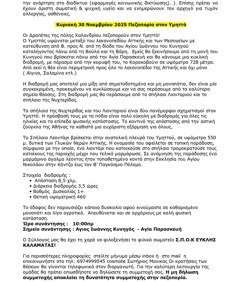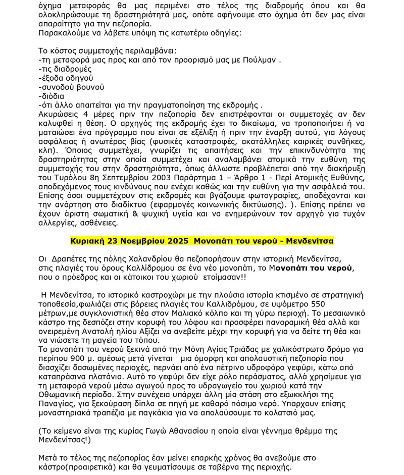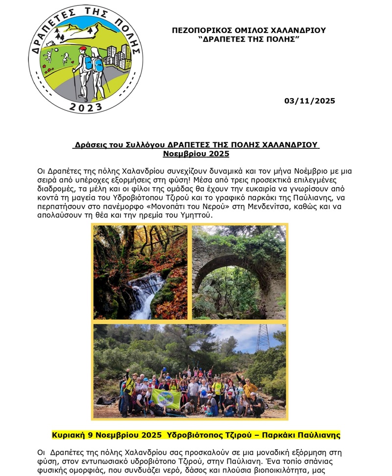 Οι “Δραπέτες της πόλης Χαλανδρίου” ανακοινώνουν τις δράσεις τους για τον μήνα Νοέμβριο 2025: