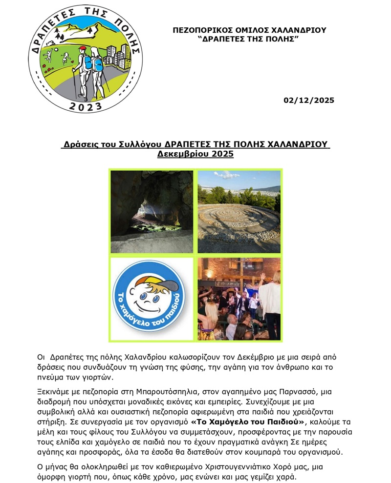 Οι “Δραπέτες της πόλης Χαλανδρίου” ανακοινώνουν τις δράσεις τους για τον μήνα Δεκέμβριο 2025: