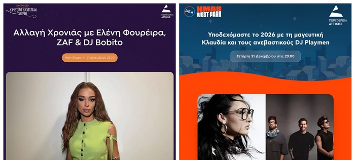 Περιφέρεια Αττικής: Πρωτοχρονιά με λάμψη, χαρά, αγάπη και μοναδικές συναυλίες, με Ελένη Φουρέιρα και Κλαυδία