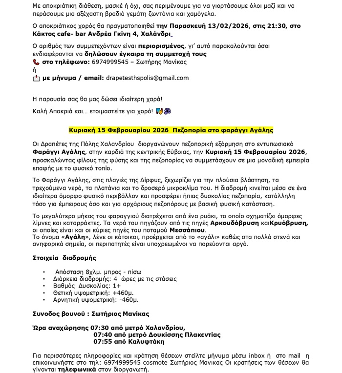 Οι “Δραπέτες της πόλης Χαλανδρίου” ανακοινώνουν τις δράσεις τους για τον μήνα Φεβρουάριο 2026: