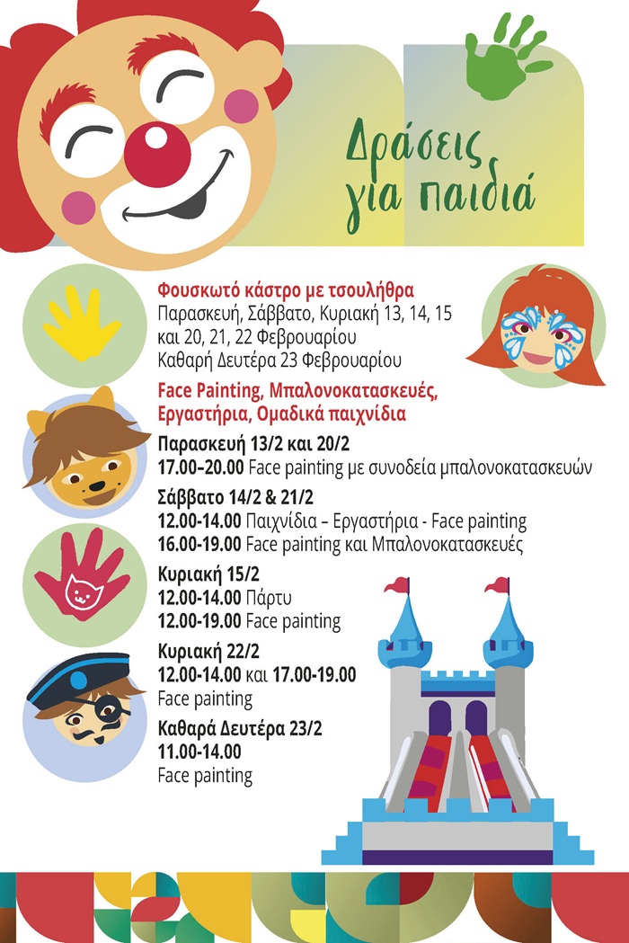 Η διασκέδαση ξεκινά την Παρασκευή 13 Φεβρουαρίου στην Κεντρική Πλατεία με δράσεις ειδικά σχεδιασμένες για παιδιά: