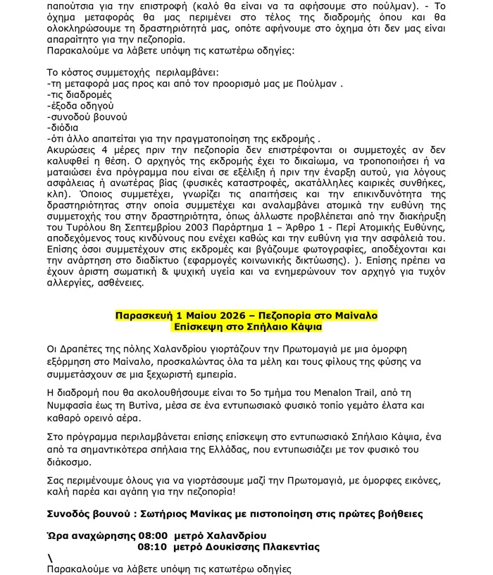 Οι “Δραπέτες της πόλης Χαλανδρίου” ανακοινώνουν τις δράσεις τους για τον μήνα Απρίλιο 2026: