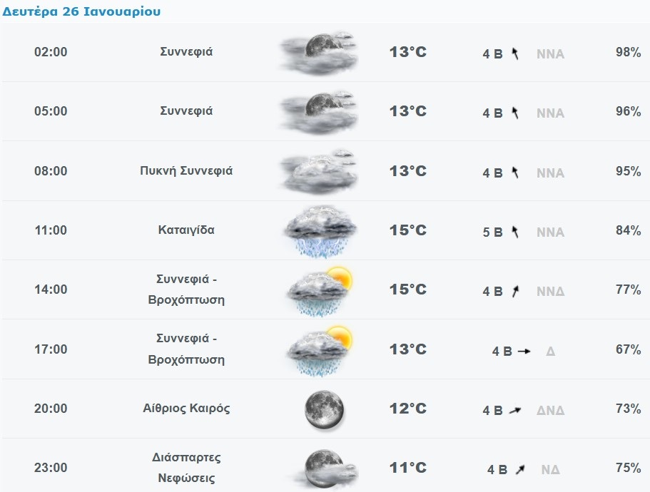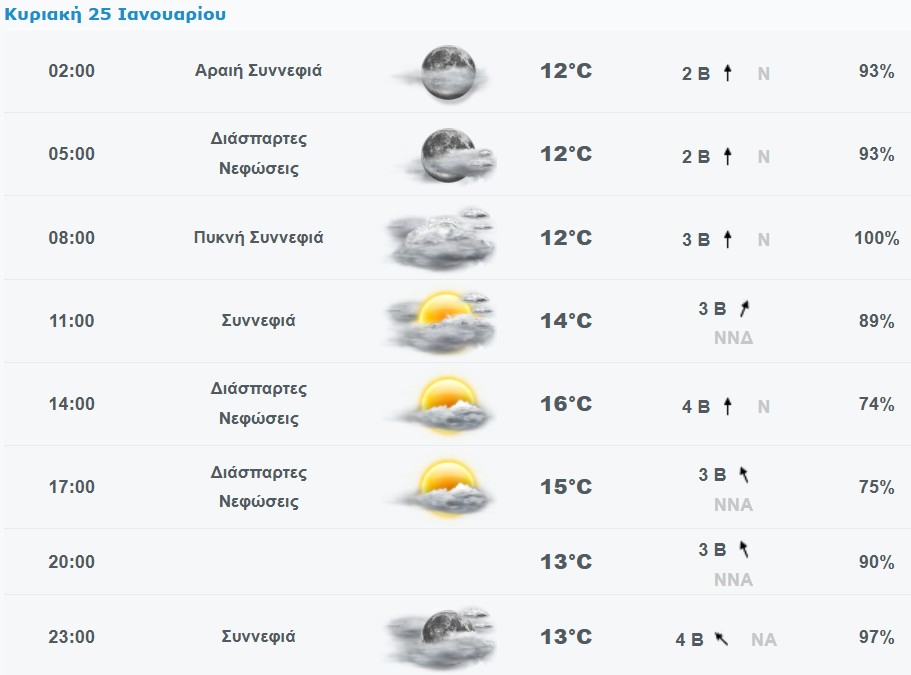 Πρόγνωση καιρού για το Χαλάνδρι: Κυριακή 25/1/2026