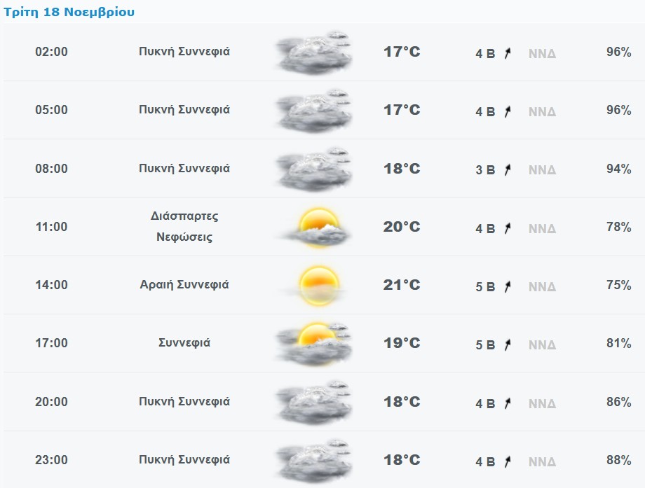 Πρόγνωση καιρού για το Χαλάνδρι: Τρίτη 18/11/2025