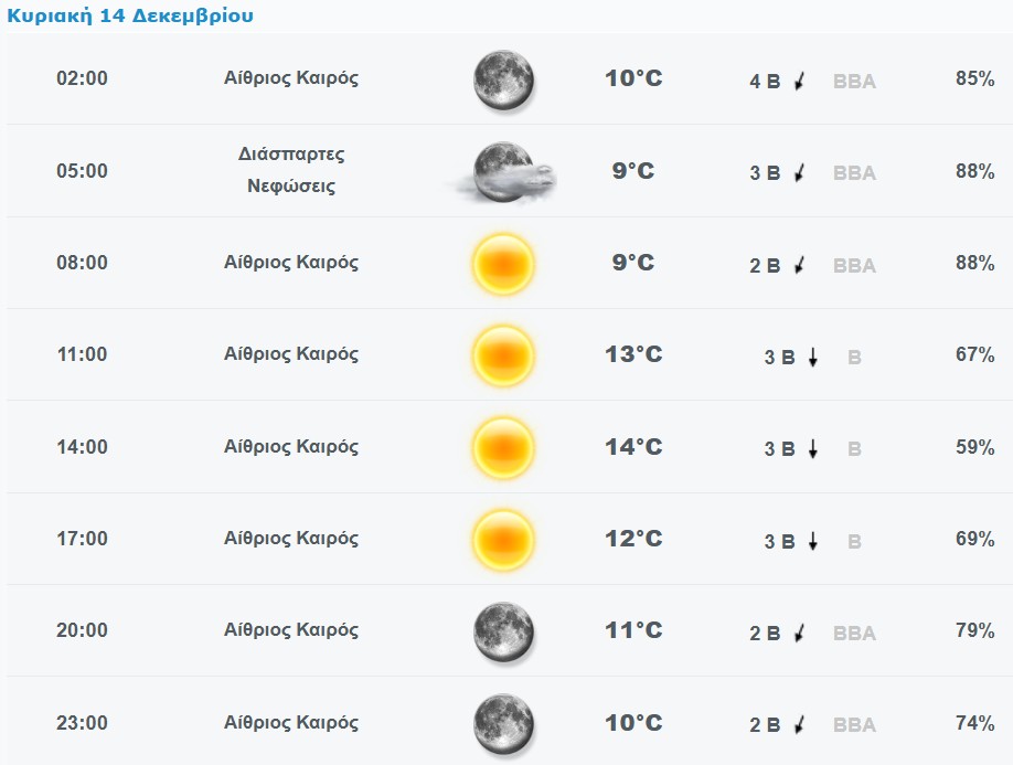 Πρόγνωση καιρού για το Χαλάνδρι: Κυριακή 14/12/2025