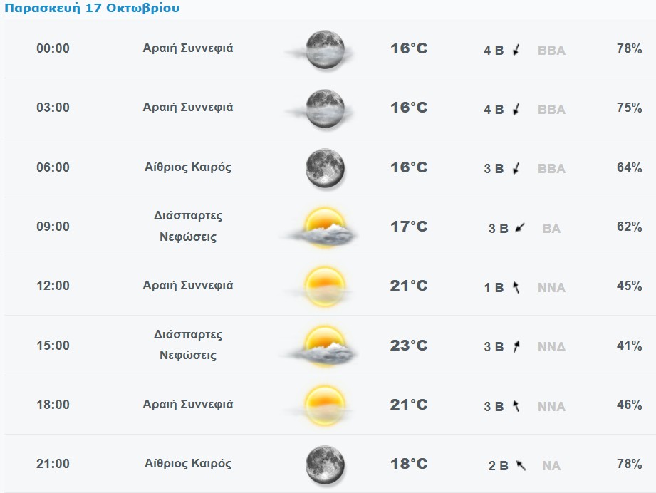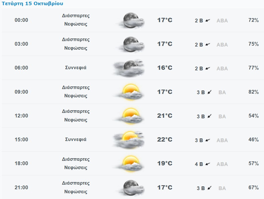 Πρόγνωση καιρού για το Χαλάνδρι: Τετάρτη 15/10/2025