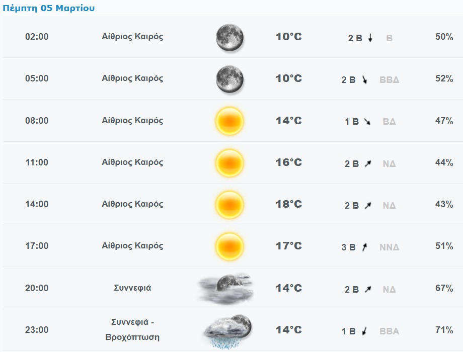Πρόγνωση καιρού για το Χαλάνδρι: Πέμπτη 5/3/2026