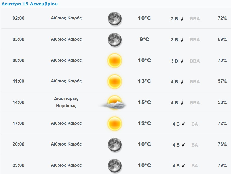 Πρόγνωση καιρού για το Χαλάνδρι: Δευτέρα 15/12/2025