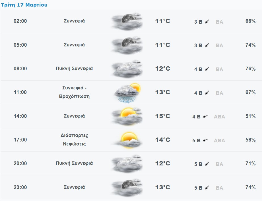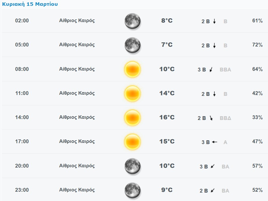 Πρόγνωση καιρού για το Χαλάνδρι: Κυριακή 15/3/2026