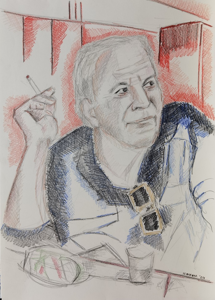 «Σαν συνέχεια της προηγούμενης ατομικής μου έκθεσης, στην Γκαλερί Χρυσόθεμις, το 2023, με τίτλο “ΠΡΟΣΩΠΑ στο ΧΡΟΝΟ” όπου παρουσίασα πορτραίτα ποιητών, συγγραφέων, ζωγράφων και γενικά ανθρώπων του πνεύματος, ήρθε ο καιρός να προχωρήσω.
