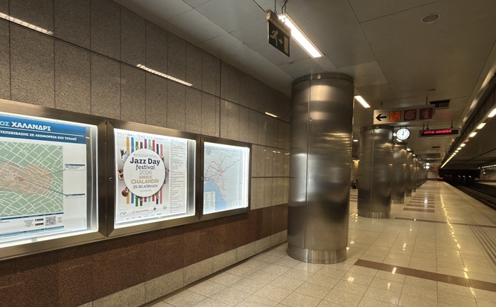 Αφίσες του International Jazz Day Festival Chalandri στους σταθμούς του Μετρό Χαλάνδρι, Εθνική Άμυνα, Νομισματοκοπείο, Πανόρμου και Σύνταγμα