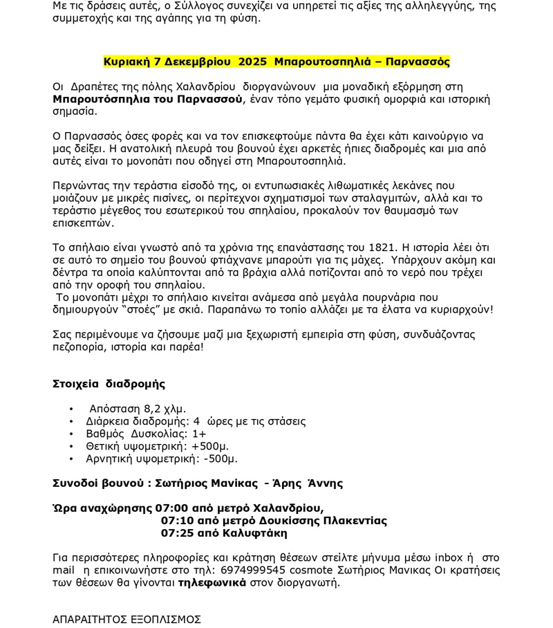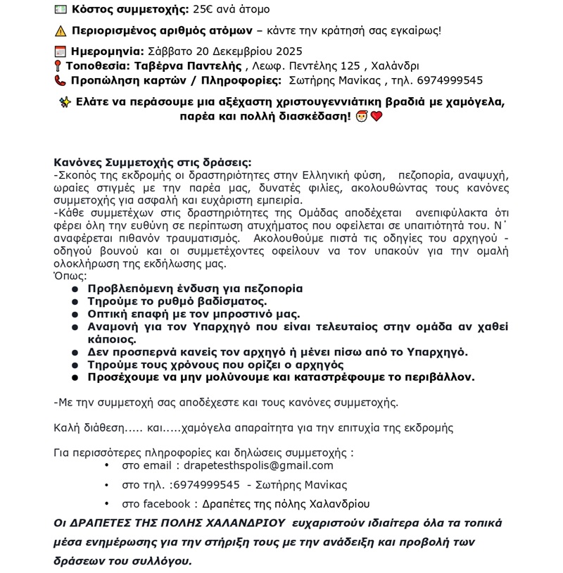 Οι “Δραπέτες της πόλης Χαλανδρίου” ανακοινώνουν τις δράσεις τους για τον μήνα Δεκέμβριο 2025: