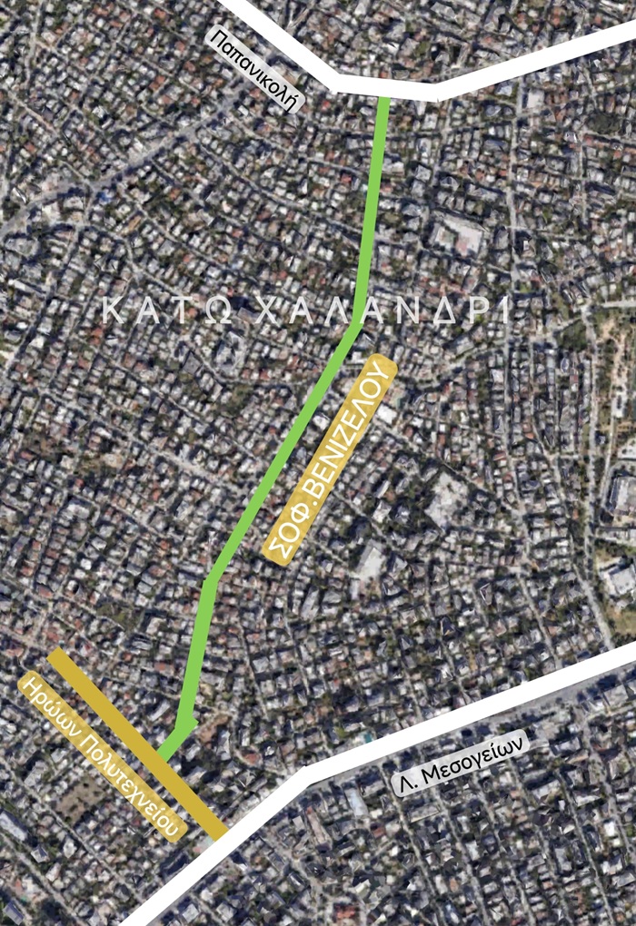 Η ανάπλαση αυτή θα συνδεθεί με το έργο που υλοποιείται τώρα από τον Δήμο Χαλανδρίου επί των οδών Καλλισπέρη και Φιλίπου Λίτσα, δημιουργώντας έτσι μια ενιαία «πράσινη» διαδρομή ασφαλούς μετακίνησης πεζών, μαθητών, ΑμεΑ και ποδηλάτων που θα ενώνει την Τούφα με το κέντρο της πόλης.