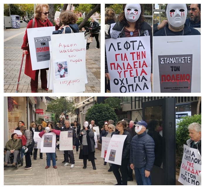 Σιωπηλή διαμαρτυρία ενάντια στη σφαγή των λαών, τη γενοκτονία και την κλιμάκωση των συγκρούσεων που απειλούν την ανθρωπότητα, πραγματοποιήθηκε το Σάββατο 4 Απριλίου 2026, στην κεντρική πλατεία Χαλανδρίου από ομάδα πολιτών.
