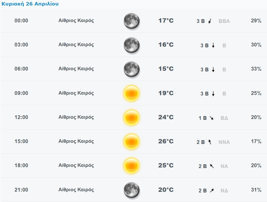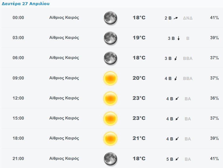Πρόγνωση καιρού για το Χαλάνδρι: Δευτέρα 27/4/2026