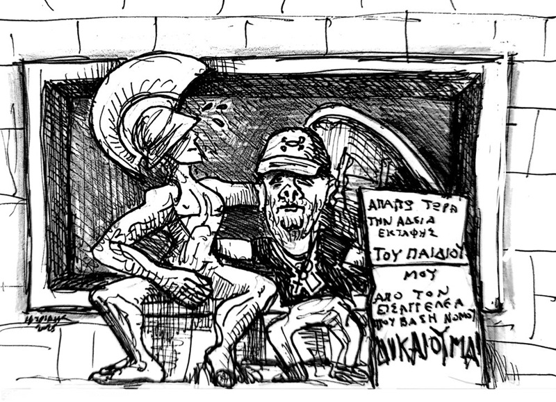 Πάνος Ρούτσι και Άγνωστος Στρατιώτης. Σκίτσο του Πάνου Ιατρίδη