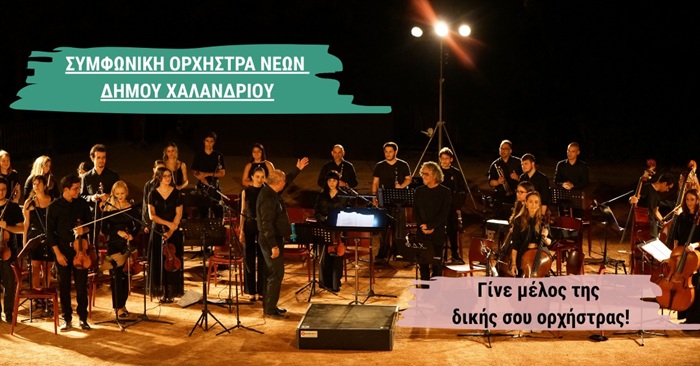 Η Συμφωνική Ορχήστρα Νέων του Δήμου Χαλανδρίου διευρύνει τα μέλη της και καλεί παιδιά και νέους, που παίζουν οποιοδήποτε όργανο ορχήστρας, πνευστό, έγχορδο ή κλασικά κρουστά, να συμμετέχουν στο συμφωνικό